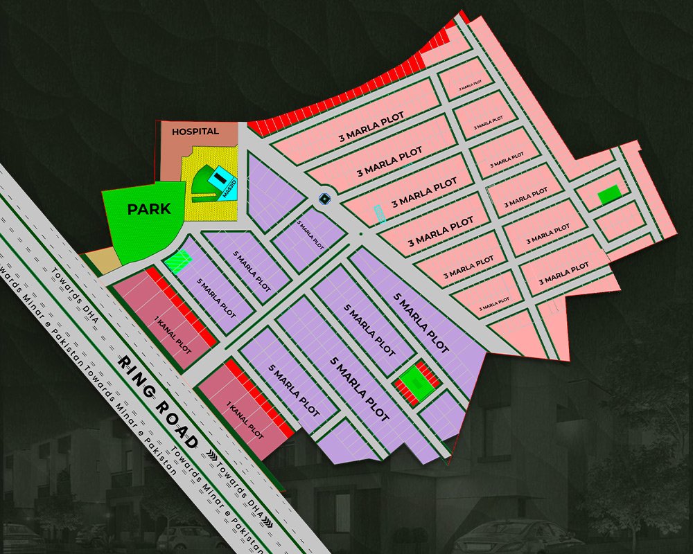 The layout of S Abdullah Homes has been carefully planned to balance convenience, comfort, and community living. With easy accessibility from Lahore Ring Road and proximity to key city landmarks, the project ensures that residents enjoy both connectivity and a peaceful environment. Every detail of the master plan reflects a vision of modern housing, making it an ideal choice for families and investors alike